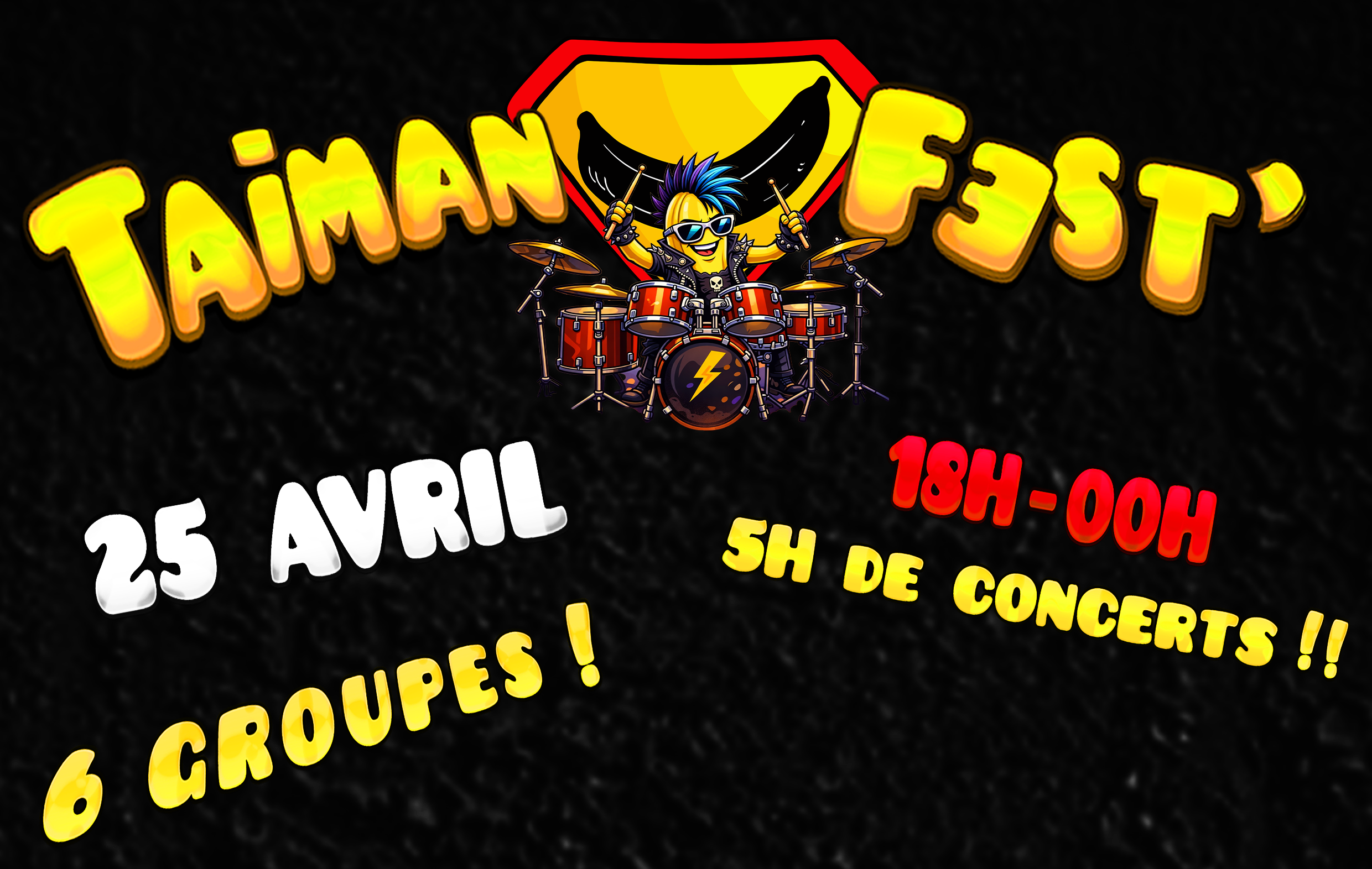 Bienvenue à toi cher auditeur, tu trouveras sur ce site toutes les informations sur ce super groupe intitulé Taiman ! Les concerts à venir, la présentation des membres, nos différents réseaux et surtout, surtout, la boutique en ligne pour que tu puisses nous donner ton argent contre de fabuleux souvenirs, des accessoires de mode indispensables ou tout autre gadget personnalisé à la banane.